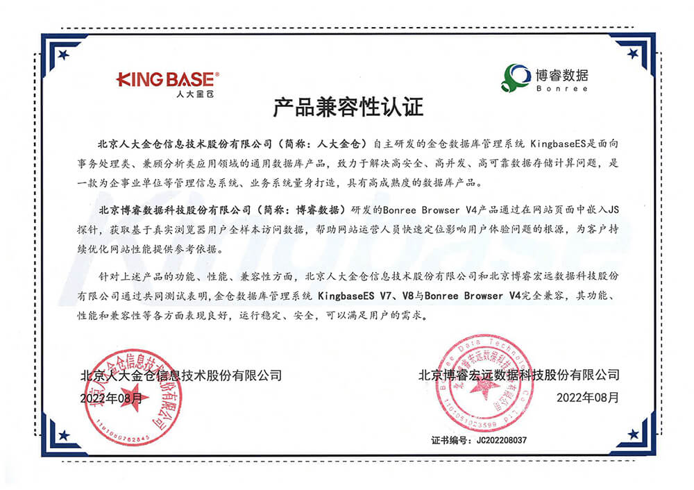 CMMI即“软件能力成熟度模型集成”是国际公认的衡量软件开发过程成熟度和过程规范性评估标准,博睿数据通过了CMMI5级评估认证,标志着博睿数据在软件能力成熟度模型中已达到最高级,在软件研发水平和管理质量跻身全球软件业先进水平,在高成熟度的体系框架下,可以为客户提供更加优质与安全的服务。