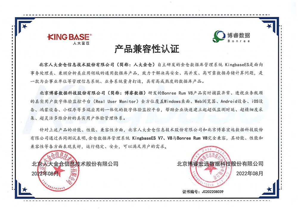 作为国内APM应用性能监控及可观测平台领导者,博睿数据十分重视信创生态发展,在产品适配方面,博睿数据全力布局适配主流的国产化整机、CPU、操作系统、中间件、数据库厂商等,与众多国产化软件优秀厂商完成了产品兼容互信,整合优势资源,协同合作,建设信创生态合作网络。同时,充分发挥自身优势,更全面地满足多行业、多业务应用需求,持续推进应用性能监控(APM)和可观测性等技术在信息技术应用产业中的拓展与创新。