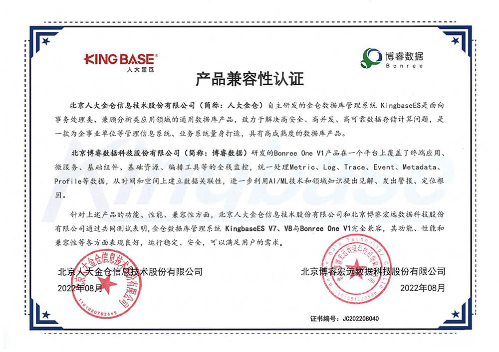 博睿数据作为国内APM应用性能监控及可观测平台领导者,积极建设信创生态,与芯片、操作系统、数据库、中间件、应用软件等生态厂商保持高度紧密合作,与众多国产化软件优秀厂商完成了产品兼容互信